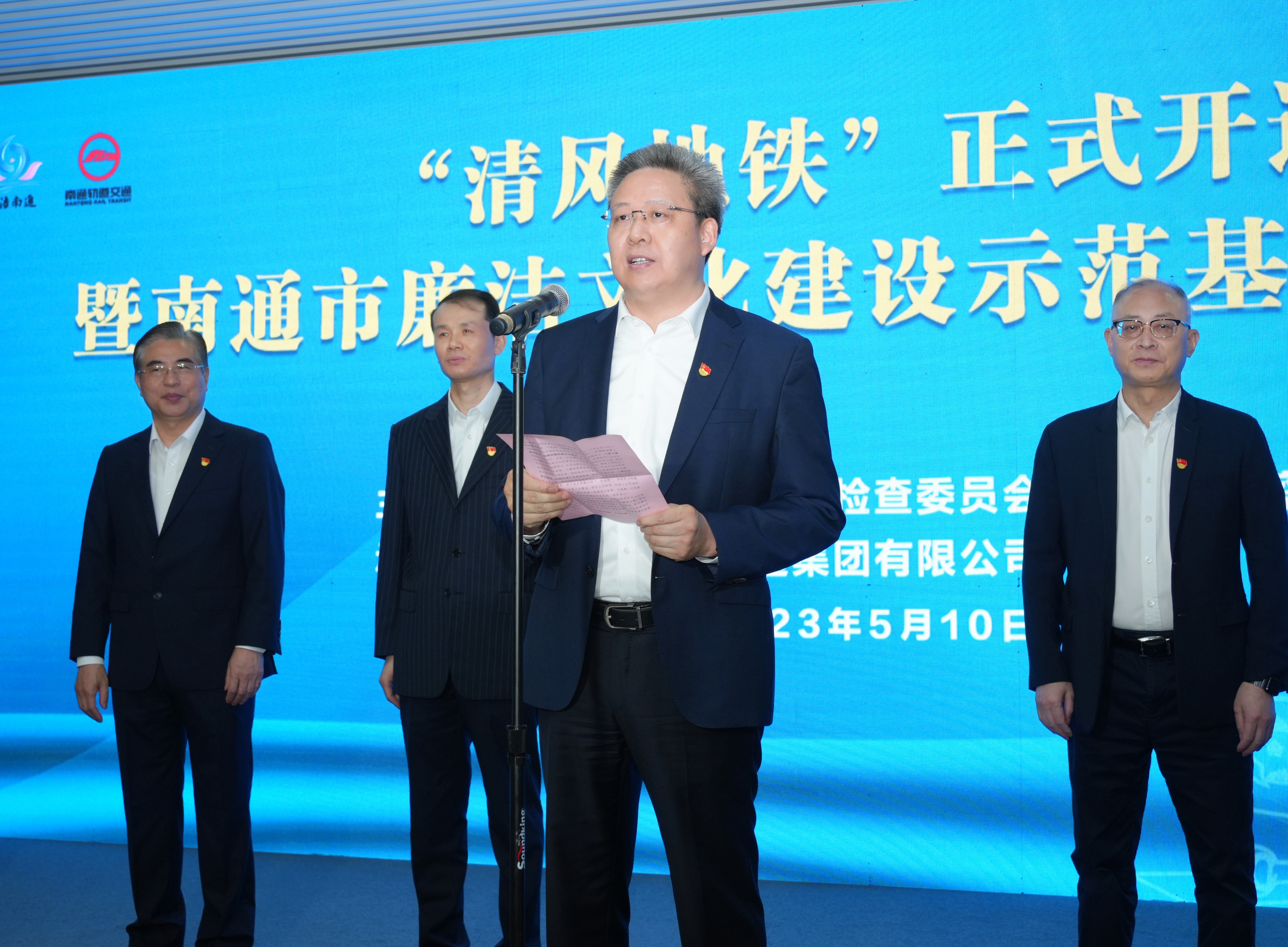 市委书记吴新明讲话并宣布“清风地铁”正式开通。他表示,创新打造廉政教育流动课堂,着力推动廉洁文化从定向传播转为动态传播,这是贯彻落实习近平总书记关于加强廉洁文化建设重要论述的实际行动,也是我市加快廉洁南通建设的有力举措,对纵深推进全面从严治党、全社会厚植廉洁文化根基具有积极作用。