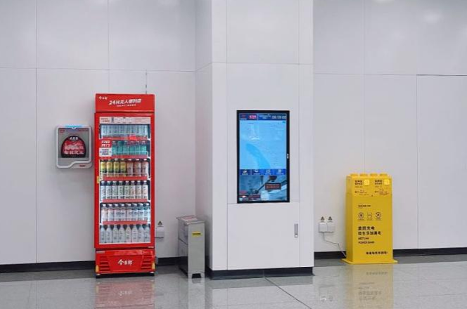 为方便乘客出行,丰富乘车体验,地铁内开设小型商业,满足乘客各类乘车需求,现有商业类型包含不限于便利店、预包装轻餐饮、饮料贩卖、充电宝等,并已引进“罗森”、“原粟”、“今麦郎”、“美团”等品牌。