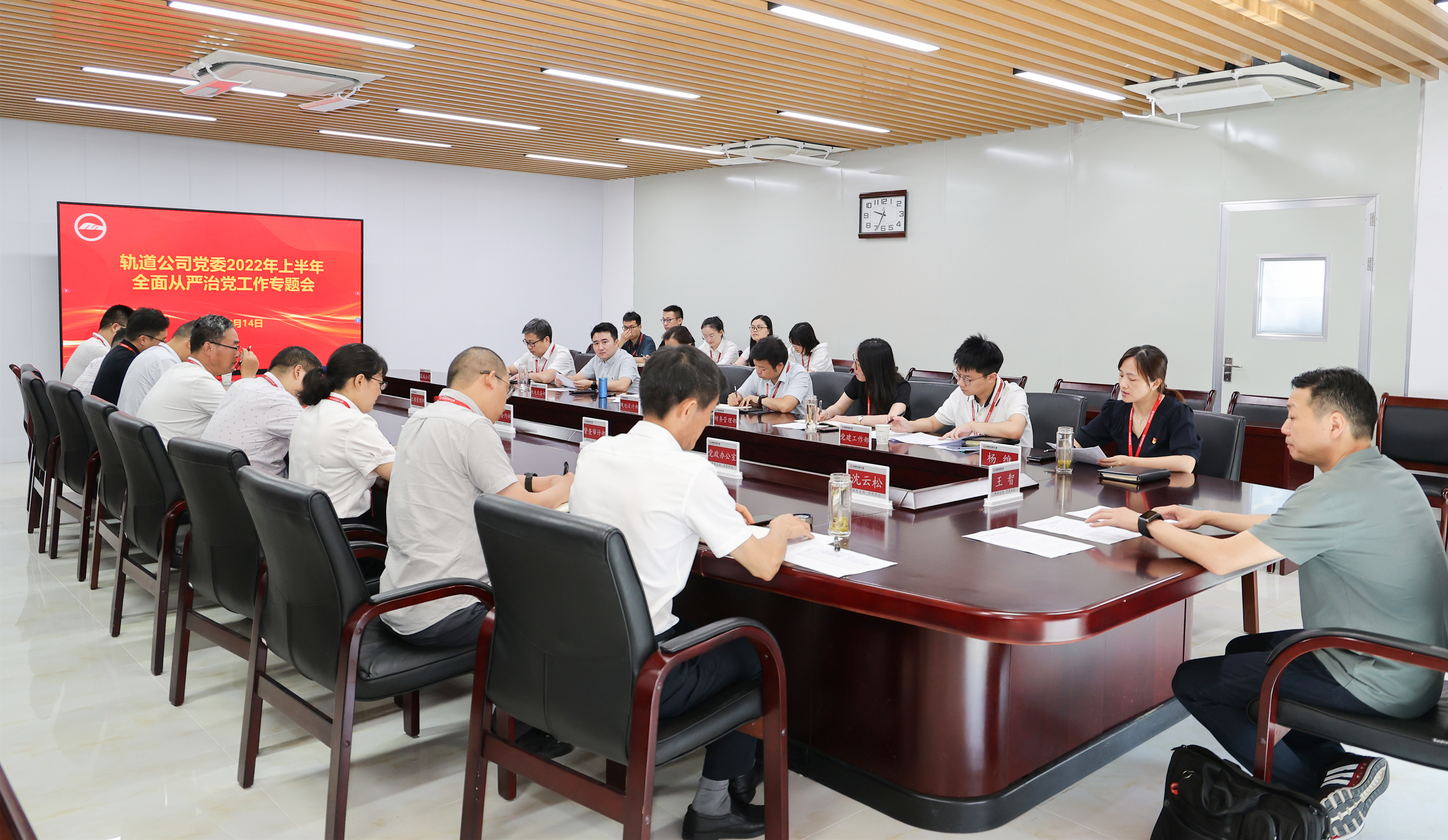 7月14日上午,轨道公司组织召开2022年上半年全面从严治党工作专题会。会议由公司党委委员、副总经理杨维主持,党委书记、董事长王智出席会议并讲话,市纪委监委派驻纪检监察组组长沈云松到会指导。