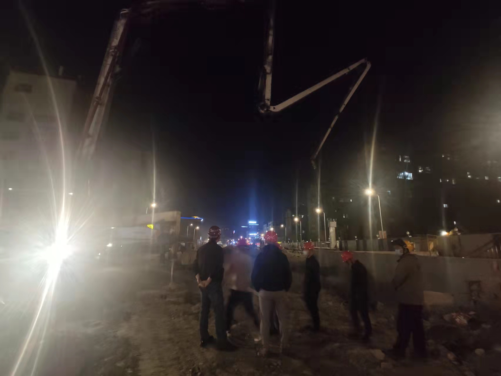 当前工程推进处于高风险工序密集阶段,在疫情防控严峻的形势下,尤其是4月6日防控再度升级为静态管控,深基坑、盾构进出洞、联络通道等20多关键风险作业急需的混凝土,面临着供应的困难。轨道公司召开紧急会议,公司紧急启动应急方案,主要领导牵头,迅速与交通局、交警支队、通州区、各区政府协调人员出行和车辆运输线路,于当天完成办理近50张通行证,并连夜发放至各安全保障应急单位。工程管理部负责人赵涛宁现场组织施工单位、混凝土企业一起研究运输线路,并承担了运输的“镖师”,在市交警支队与市交通局的大力协助下,运浇筑至现场。