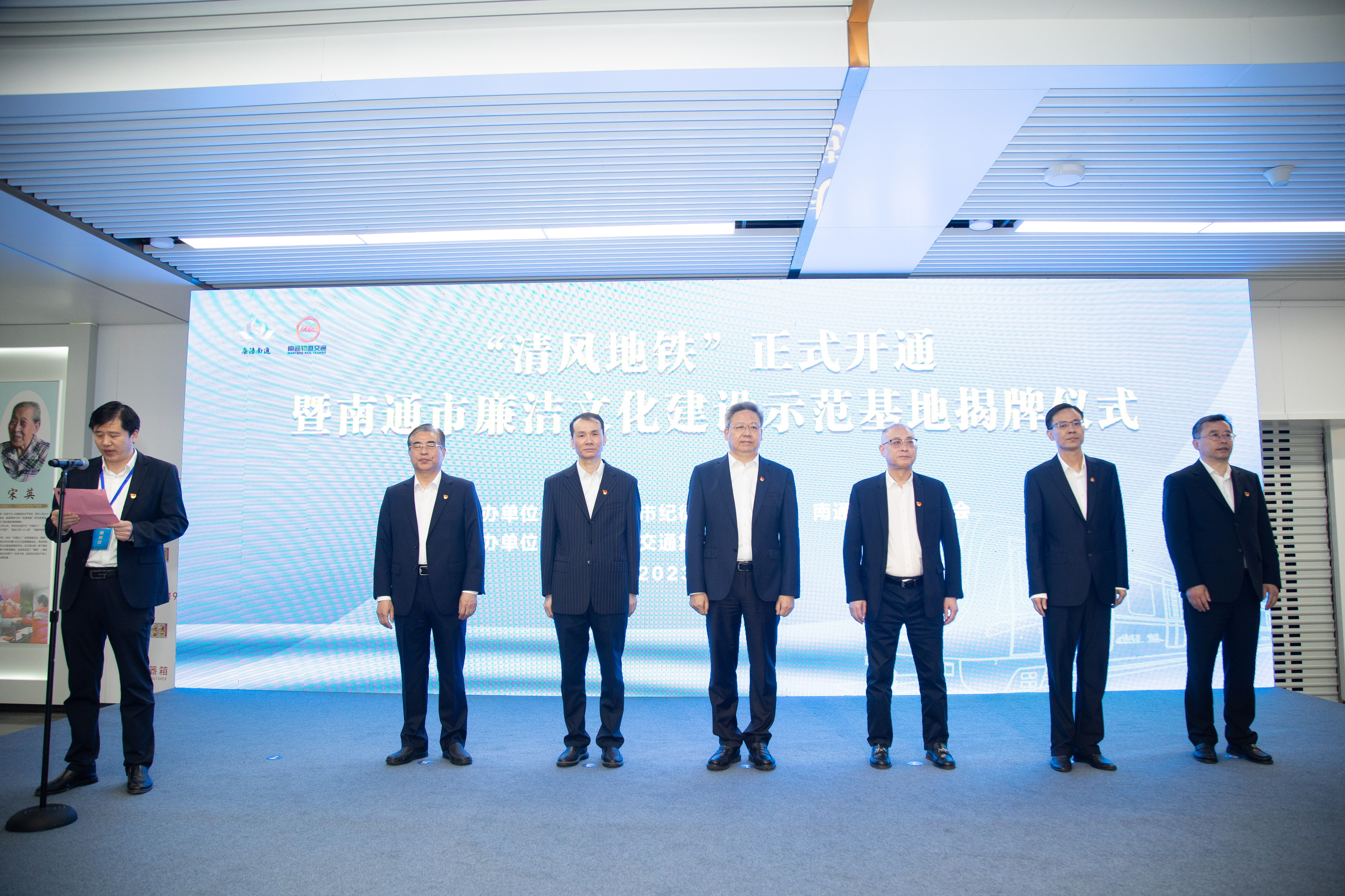 5月10日是全市第16个“5·10”思廉日。今日上午,“清风地铁”正式开通暨南通市廉洁文化建设示范基地揭牌仪式在轨道交通1号线世纪大道站地铁廉文厅举行。市委书记吴新明,市人大常委会副主任、党组副书记庄中秋,市委常委、市纪委书记、市监委主任姜东,副市长童剑,市政协党组成员、副主席金元,市中级人民法院党组书记、院长刘坤出席仪式。市纪委副书记、市监委副主任姚胜主持仪式。