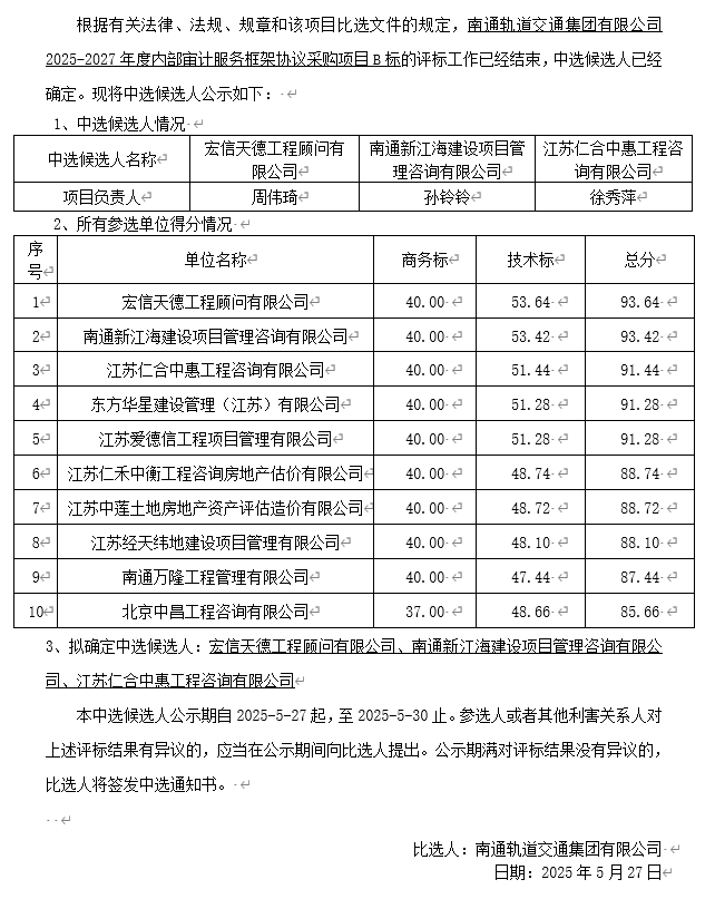 bb电子(中国)官方网站 2025-2027年度内部审计服务框架协议采购项目B标中选候选人公示