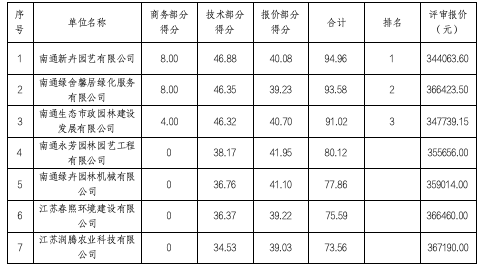 南通新卉园艺有限公司,中标价格:34.40636万元。